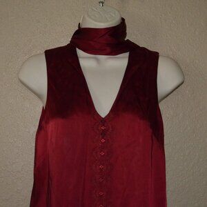 NWOT $295 Sz S Jonathan Simkhai Cranberry Red Sleeveless Neck Tie Blouse