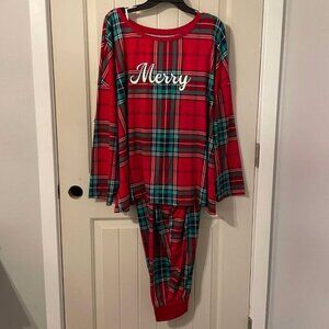 NWOT 2Pc 3X 22W-24W Women's Soft Plaid Merry Christmas Pajamas w/ Pockets