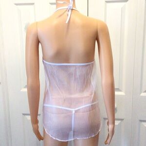 2pc White Mesh & Lace Lingerie Lightweight Chemise And Thong Panty Set Size S. New without tags in plastic bag. Never tried on or worn. From smoke free home.