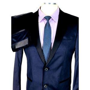 NWOT 38S Hugo Boss Hector1 Generous1 2 Bttn Suit Metallic Midnight Blue Pants 32