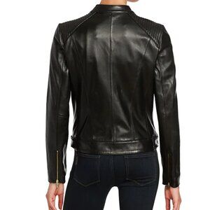 NWOT $495 Cole Haan Black Lambskin Leather Moto Zip Jacket Medium