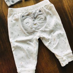 3 leggings: hedgehog print, solid gray, white w/stars & owl detail on the tush
