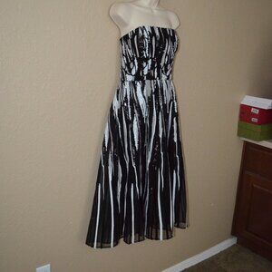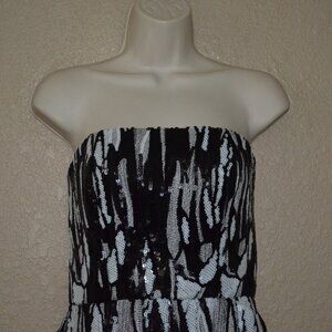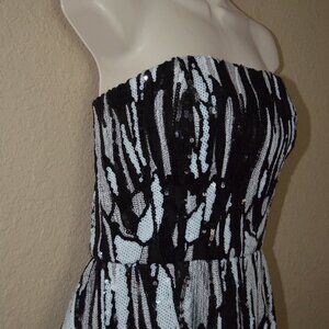 NWOT $5720 Sz 36 2 Elie Saab Black White Embroidered Sequin Midi Strapless Dress