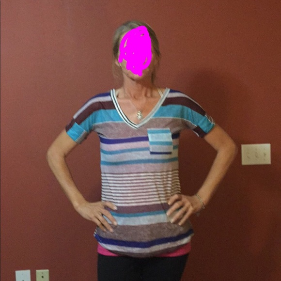 Striped v neck top. Soft.