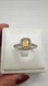 This is a stunning 5x3mm emerald cut citrine, surrounded by a halo of cz diamonds and down the shank! Stamped 925 on the inside of the shank.