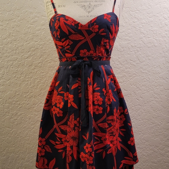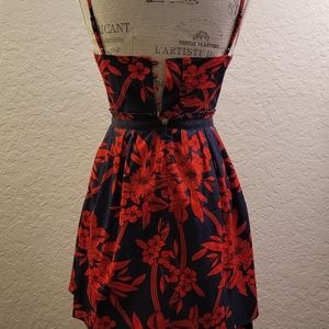 Pretty navy and red floral dress perfect for a date night or girls night out with some red pumps and a bold lip. Chest area is padded.