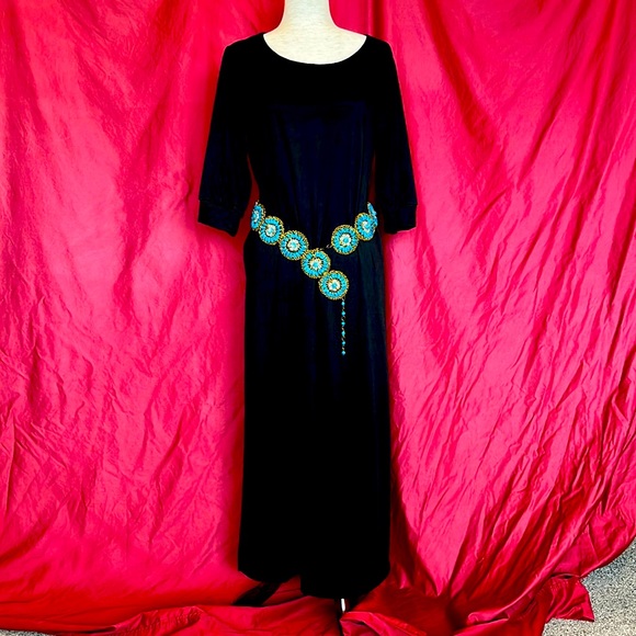 black stretchy fabric side slits both sides belt sold separately