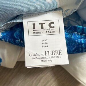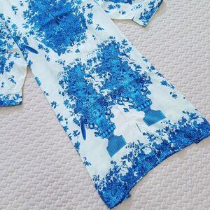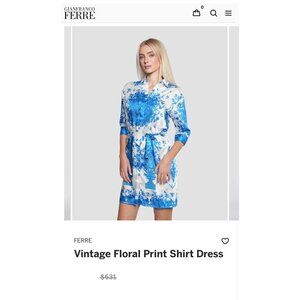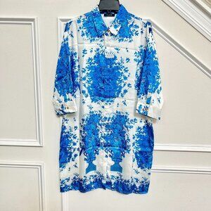 NWOT $631 FERRE Vintage Floral Print Blue Mini Shirt Dress Size IT50