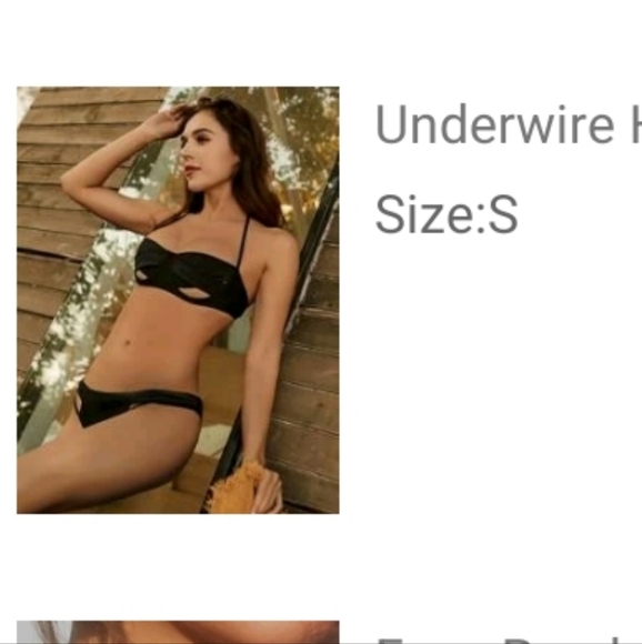 never worn black underboob exposed top bottoms have decent coverage top has clasp back purchased for honeymoon and did not end up wearing it