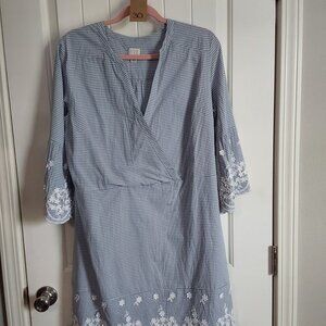 Blue and white striped with white floral embroidery