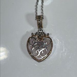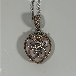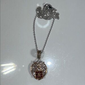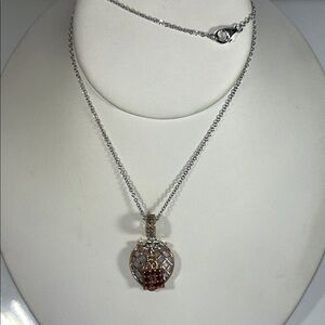 Sterling silver palladium allow. Genuine mother of pearl and Rhodonite garnets. May be worn at 18” or 20”. By designer Michael Vallatutti. Part of the Paris collection. Appropriate for any occasion. Great gift. Comes with gift bag. (D1)