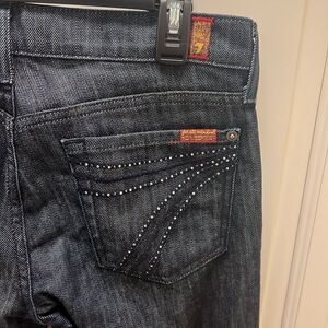 NWOT 7 For All Mankind Jeans Dojo Mercer Crystal Sz 28 Flare Diamanté Dark Wash