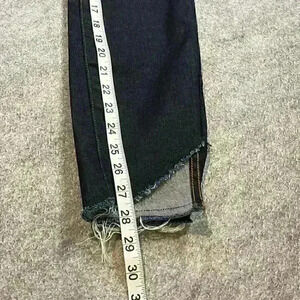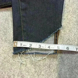 These are NWOT's but have been washed. . They are a great dark wash that can easily be dressed up or dressed down. They have a great, unique angle cut detail on the hems.
