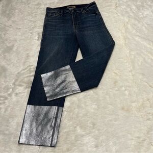 NWOT super soft straight jeans with stretch. Silver at the bottom. 26” inseam, 11” rise.