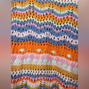 NWOT 70s Style Crochet Long Sleeve Striped Top Size Small