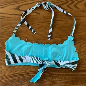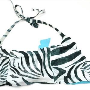 NWOT $82 PILYQ Tanzania Reversible Zebra Print Bikini Top. Reversible to Sea Blue Color. Seamless. Zigzag Edges. Halter that ties in the back and neck. Not Padded. Patterns vary.