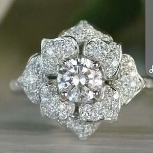 🏵 Luxury Diamond Cubic Zirconia Flower Ring 🏵 925 Sterling Silver 🏵