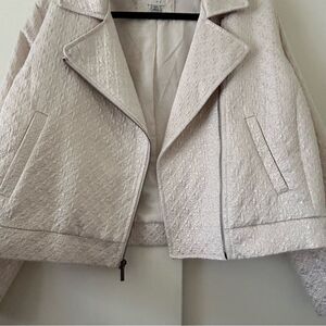 •Cream and metallic gold side zip moto bomber cropped utility jacket