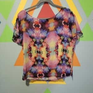 NWOT ABS John Fogerty Women's Sheer Watercolor Print Blouse Size Medium Ptp 21