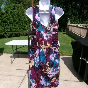 NWOT ADRIANNA PAPELL FAB PLUM/PURPLE FLORAL PRINT KNIT DRESS 12. DRESS IS 95% POLYESTER 5% SPANDEX. BUST 35" LENGTH 39" HIP 39".