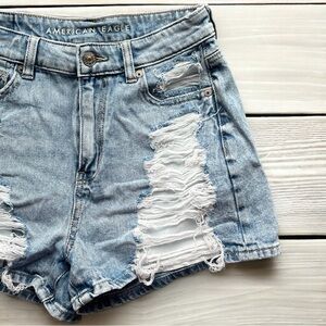 NWOT AE Women's Comfort Super Stretch Distressed Curvy Mom Denim Shorts