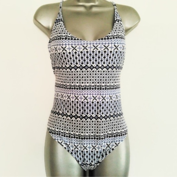 NWOT Aerie Voop One Piece white/blue print swimsuit. Scoop neck. Fully lined. Removable bra pads. Adjustable straps. Double cutout sides. ❤️HP❤️