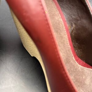 Please review all photos carefully as they are part of the description. There is what looks like dye runoff on the bottom of the shoe. Please see pic.