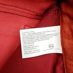 Elevate your wardrobe with these exceptionally luxurious leggings from AG. Crafted in Italy from 100% genuine Lamb Suede (nubuck), the material provides a rich texture with comfortable natural stretch. The deep, rich hue—Rustic (Rust, Wine color)—is a stunning alternative to basic black.