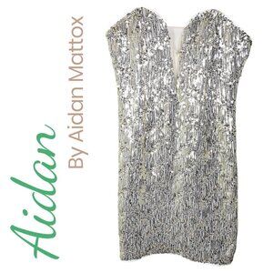 NWOT AIDAN MADDOX GLAMOROUS GOLD SEQUIN STRAPLESS MINI PARTY DRESS, SIZE 10
