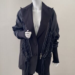 NWOT AKIRA Black Don Eyelet Oversized Blazer Bomber Jacket with Lace-up Details