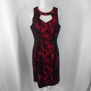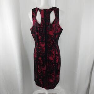 NWOT! ALBERTO MAKALI! FUSCHIA PINK)RED WITH BLACK LACE OVERLAY DRESS! SZ L