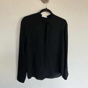 A.L.C. Danielle Long Sleeve Silk Blouse Black Tie Neck