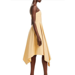 NWOT A.L.C. Women's Beige Verona Asymmetric-Hem Midi Fit & Flare Dress S…