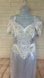 No size tag BUST 15.5” WAIST 13.5” LENGTH 59” according to measurements it’s a small for sure approximately beautiful faux pearl’s detailing adorned by sequins super feminine wedding gown.