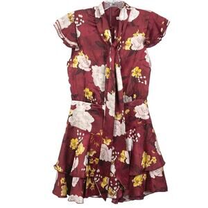 NWOT ALICE + OLIVIA Dress 0 Silk Tie Short Sleeve Tiered Floral Lashay