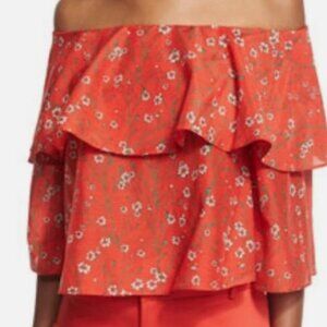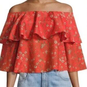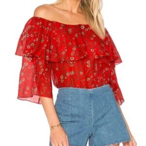 NWOT ALICE + OLIVIA Meagan Off-the-Shoulder Tiered Red Floral Top S $250