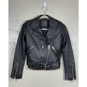 NWOT ALLSAINTS BALFERN LEATHER BIKER WOMEN'S JACKET BLACK SIZE - 0.US/4.UK/32.EU