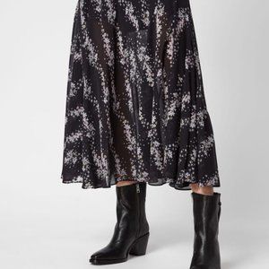 New without tags. Ankle-length skirt from AllSaints, "Cultivar" print (black, with delicate white florals)