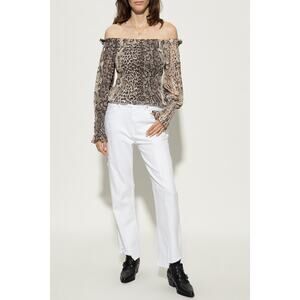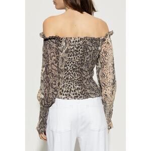 NWOT ALLSAINTS Off the Shoulder Balloon Sleeve Lara Animal Print Top Size 2