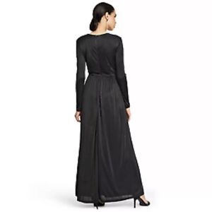 Long-sleeve black maxi dress makes for a sleek and sophisticated look