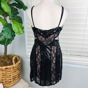 NWOT ANGL COCKTAIL SEQUINS LACE MINI BLACK DRESS