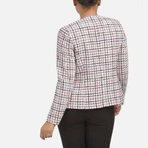 NWOT ANNE KLEIN WHITE PINK TWEED OPEN FRONT CAREER JACKET BLAZER Collarless