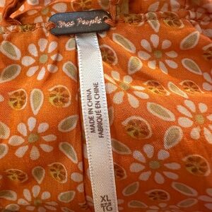 New without tags Anthropologie Free People hooded quilted jacket. Zips all the way down the front. Also has large yellow buttons for more closure. Around the hood there’s a little rope tie so you can adjust the hood. There’s also the same type around the bottom to adjust the bottom. The material is like a silky feel. Two large front pockets.. The color is a really pretty orangey color with it looks like yellow sunflower. The size is XL.