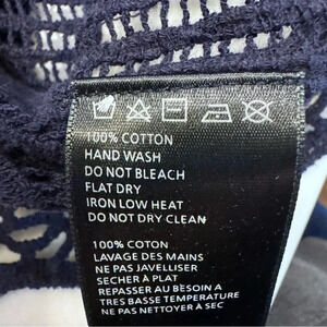 New without tags. Anthropologie James Coviello crochet top. Navy blue, short sleeve. 100% cotton. Size XS. See photos for measurements