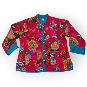 NWOT ANU INDIA DOUBLE SIDED QUILTED SILK COTTON FLORAL RED BLUE JACKET SIZE L
