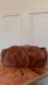 Elegant brown faux leather clutch with a unique gathered design. Perfect for any occasion.