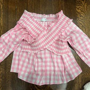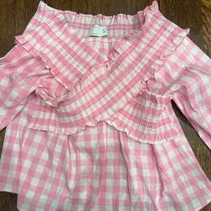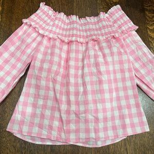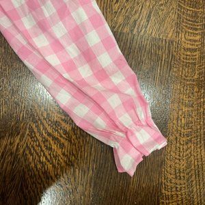 NWOT ASOS DESIGN shirred shoulder long sleeve top in pink check US 8
