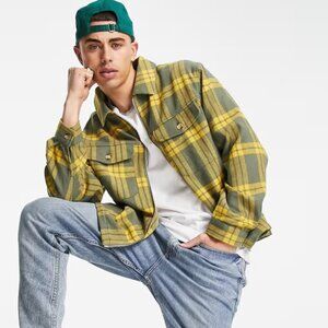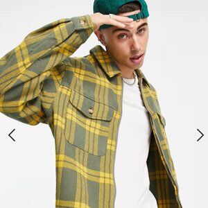 NWOT ASOS Design Harrington Check Jacket in Green/Yellow Men's XSMALL Full Zip Plaid