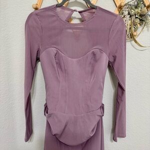 NWOT! ASOS Design Mauve Corset Mesh Sleeves Drape Mini Dress Size 4