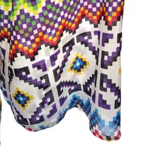 New without tag White with multicolor southwestern/aztec print Somewhat sheer chiffon Waist: 35" Length: 17.24"